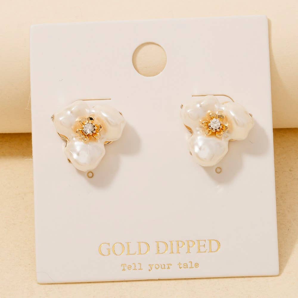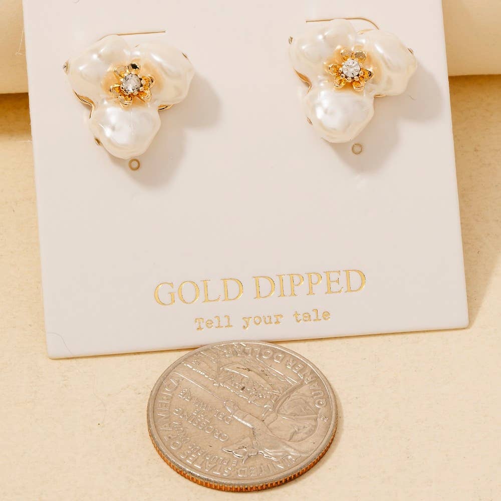 Bold, daring, and endlessly stylish, this pair of stud earrings showcases a breathtaking gold dipped pearl and gem flower design. Unleash the charm of this versatile pair of stud earrings. .