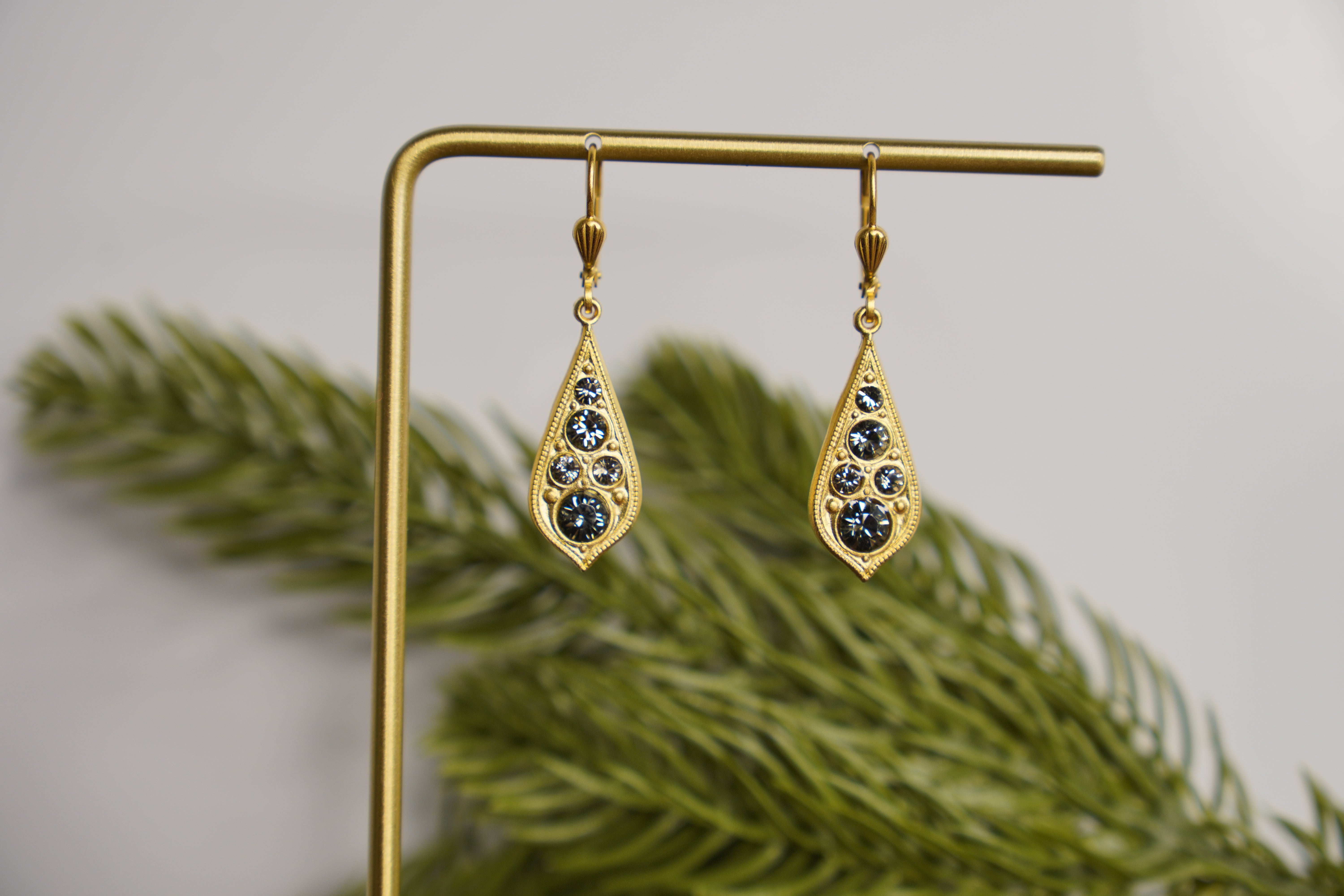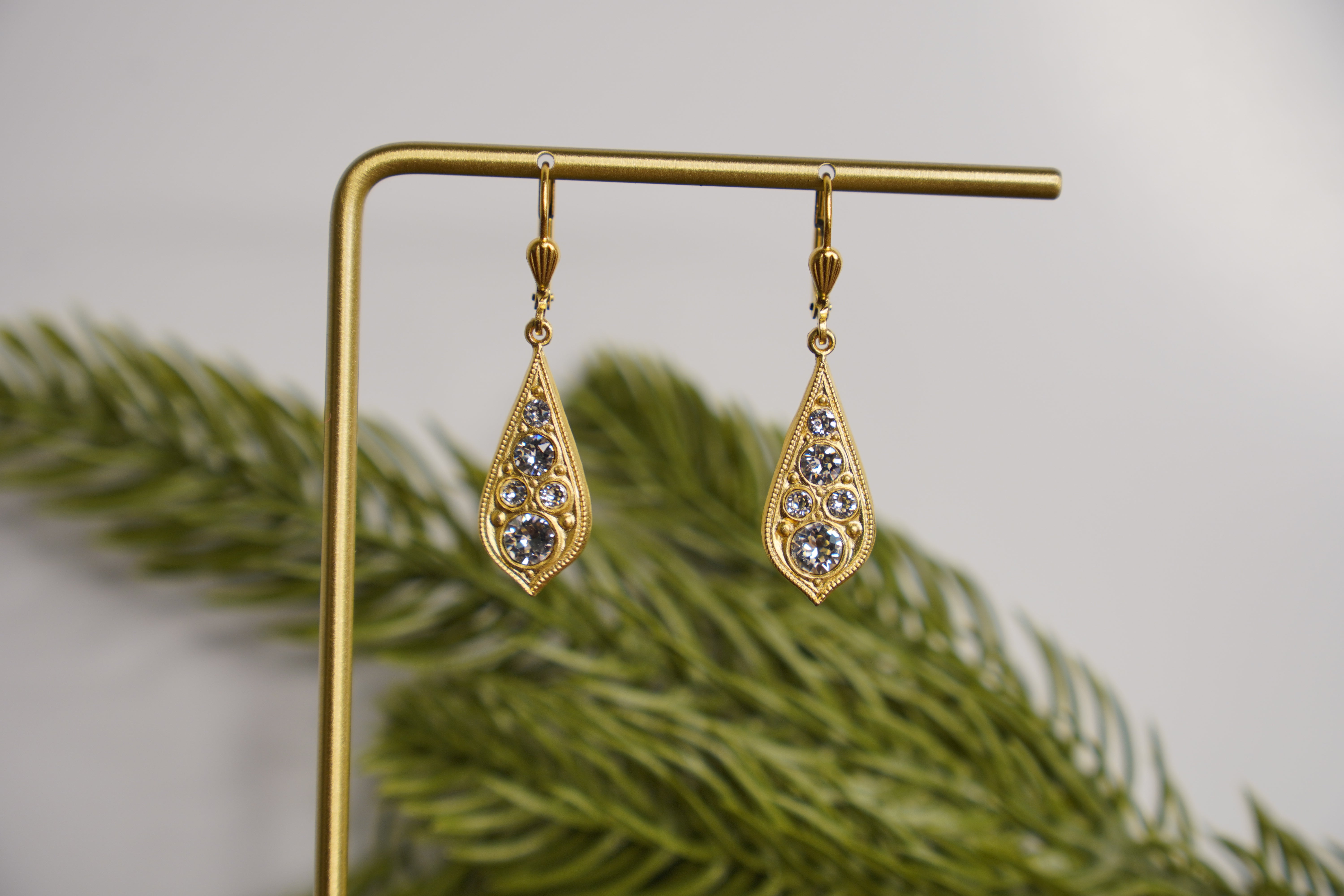 18K Gold Rhinestone Teardrop Earrings