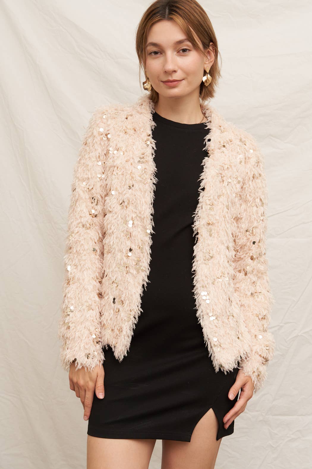 Oversized Feathery Glitter Sequin Sweater Cardigan 100% Polyester Size S(2) - M(2) - L(2)  * MODEL IS 5'8" AND IS WEARING A SMALL.