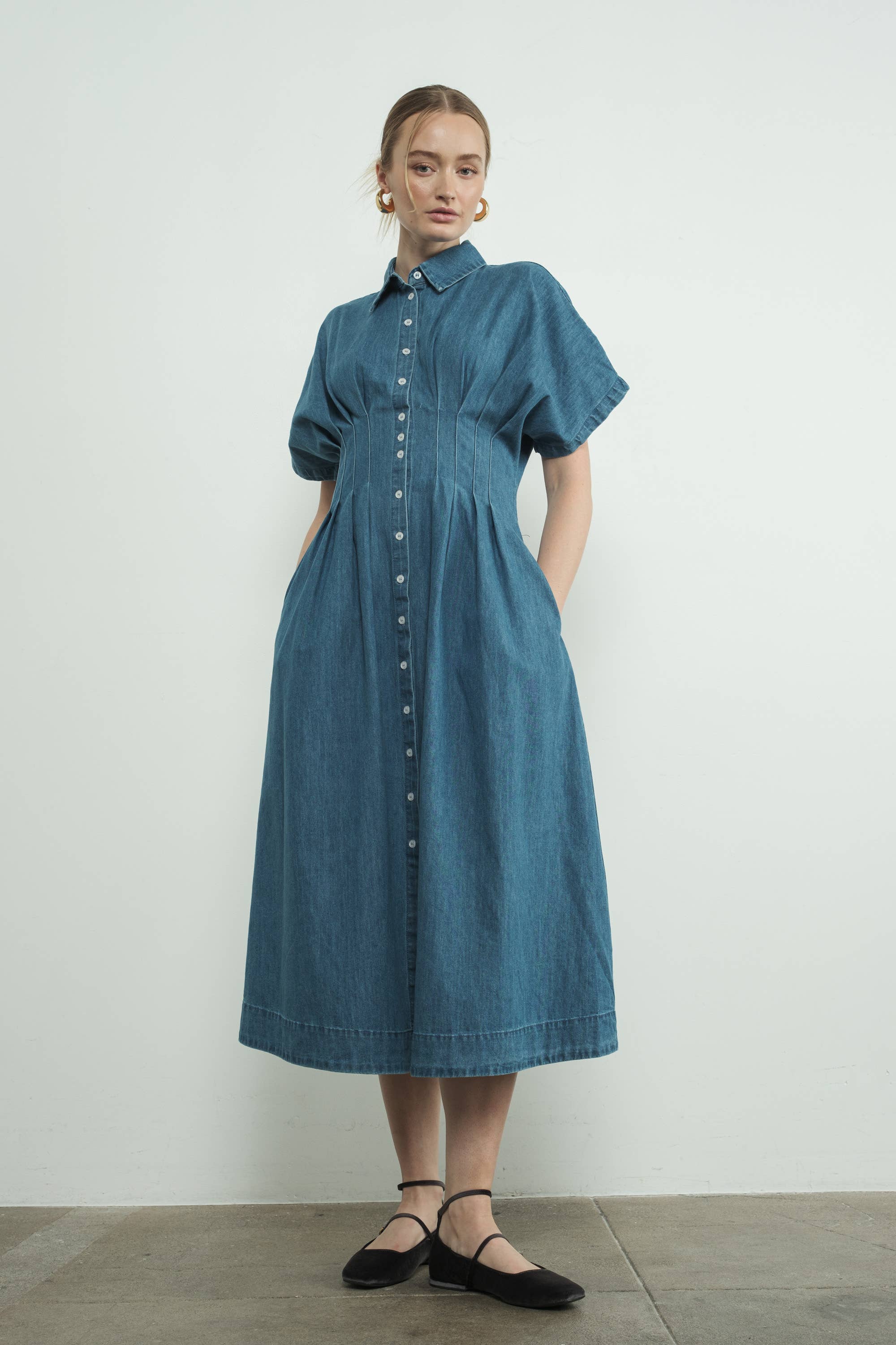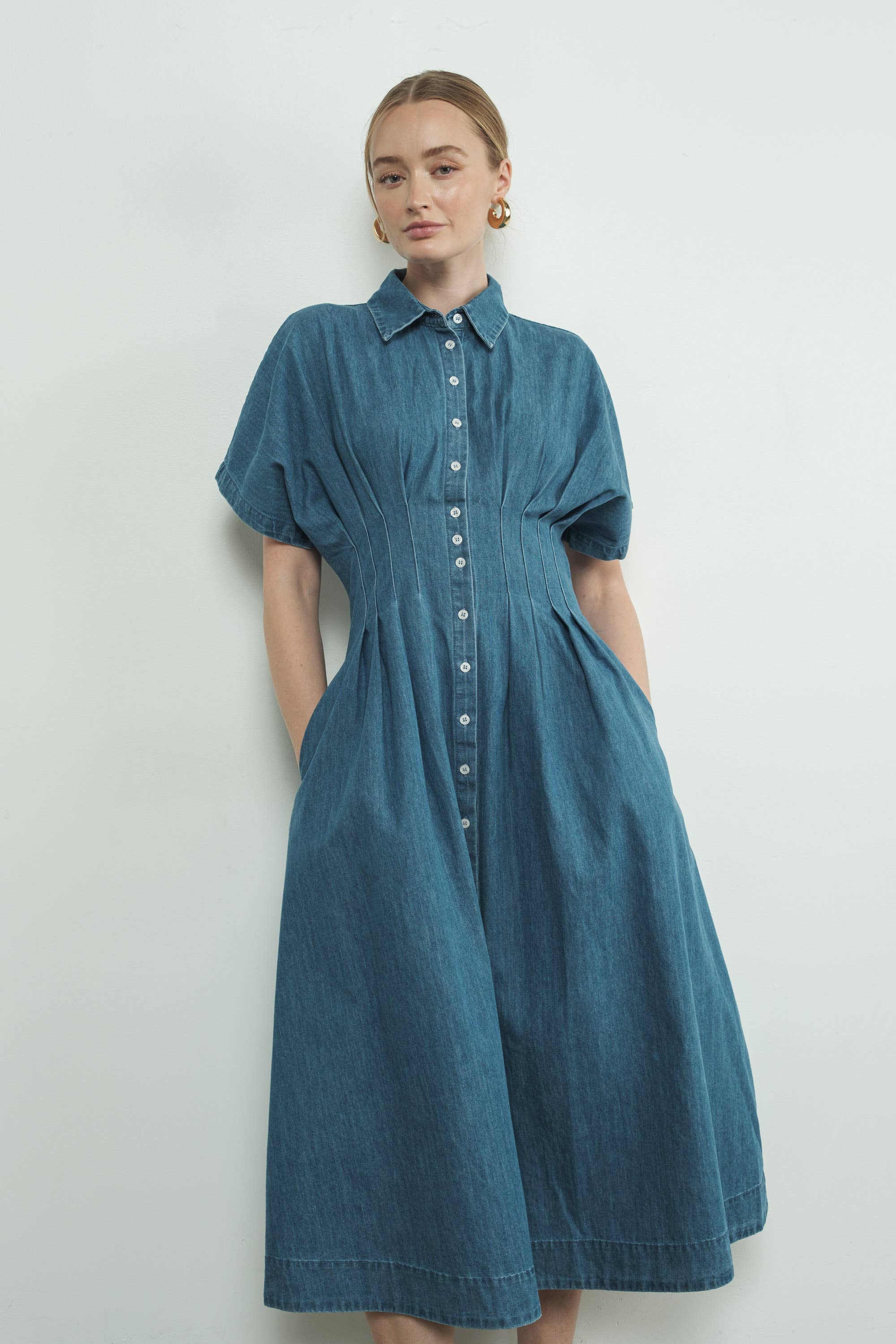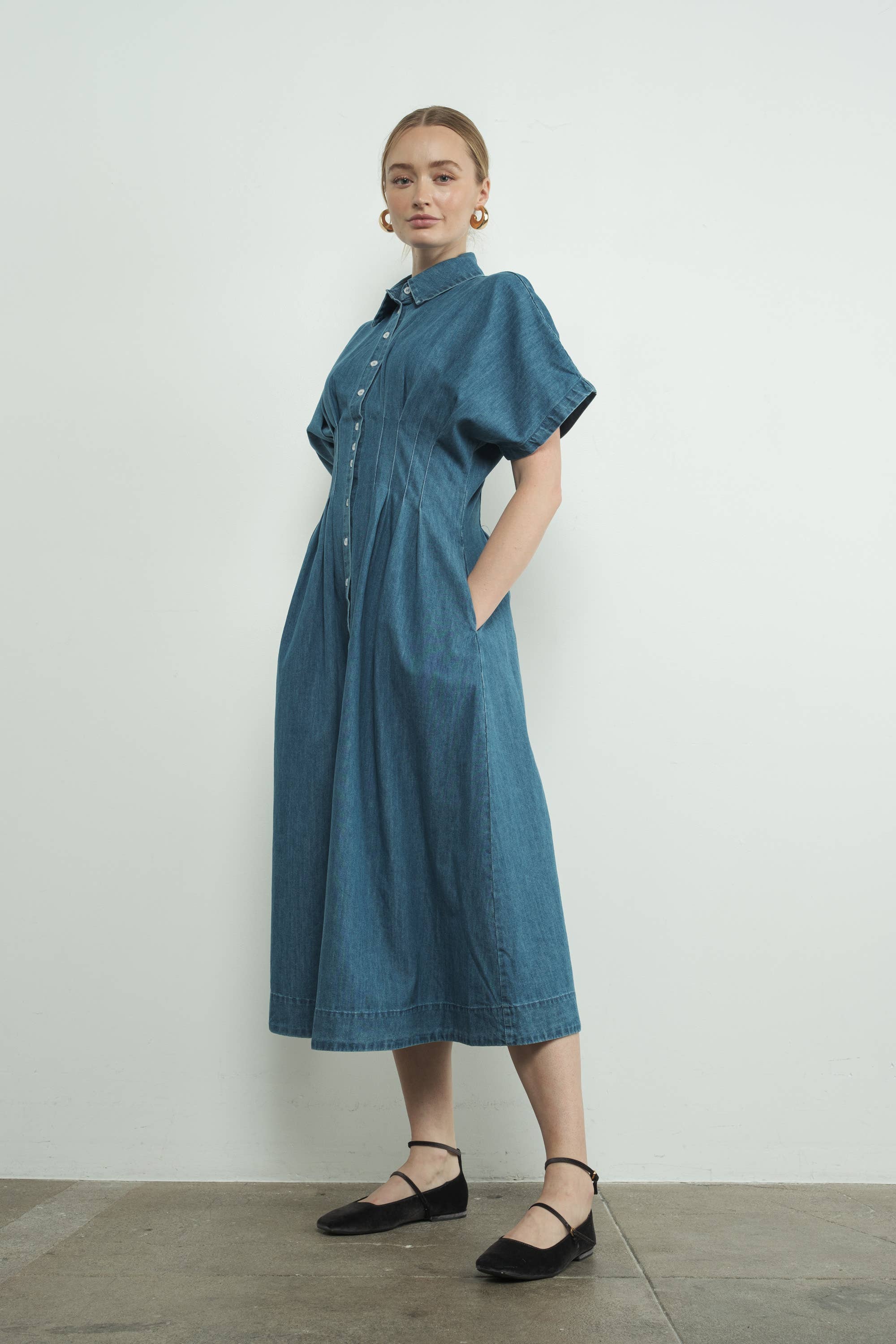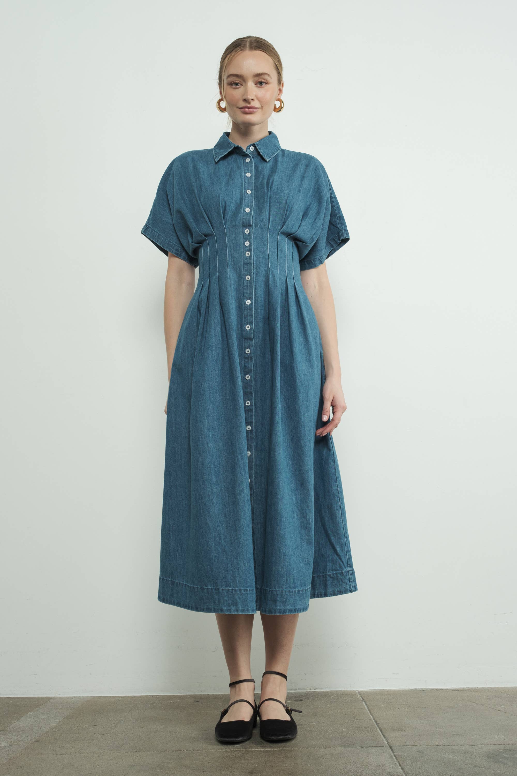 MADI BUTTON FRONT PLEATED SHIRTS MIDI DRESS