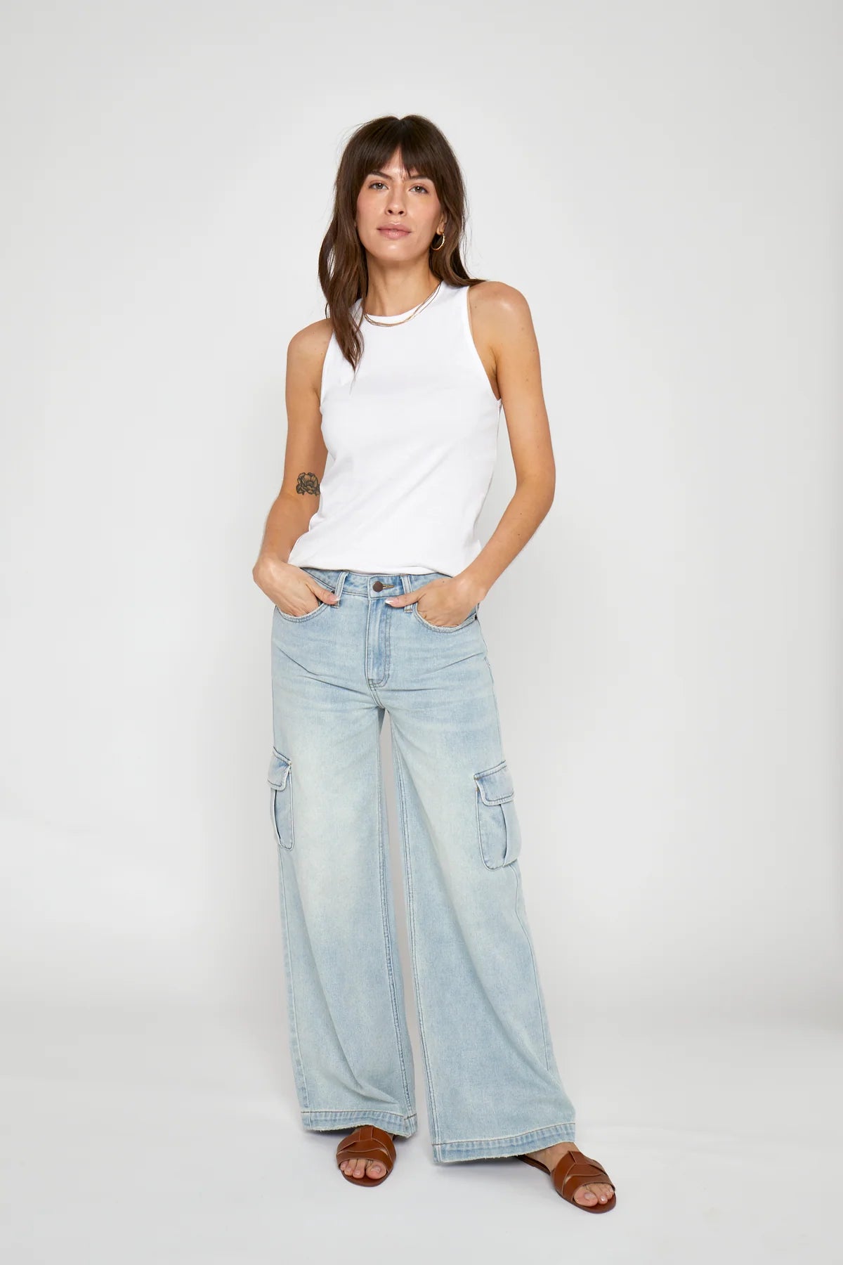 Madison High-Waist Wide Leg Cargo Jeans - Light Wash