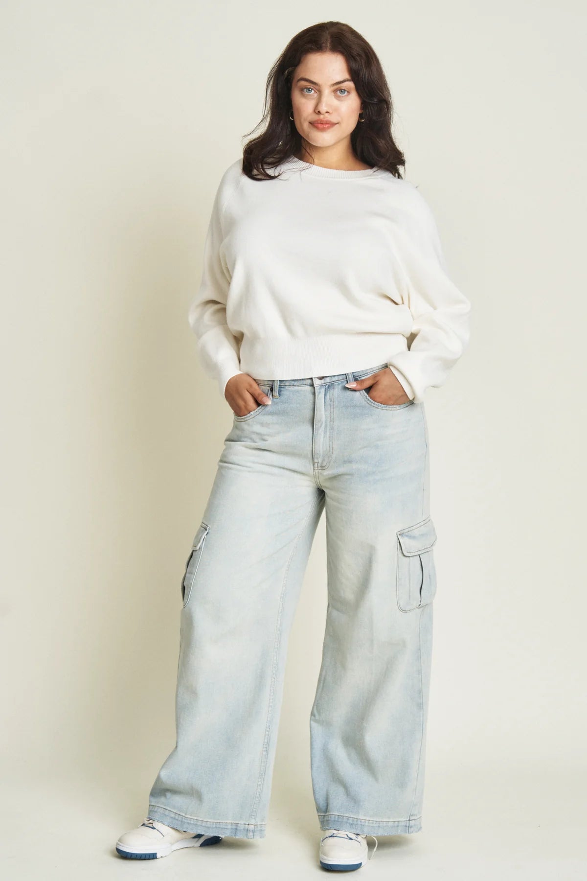 Combine Y2K nostalgia with modern utility in these essential light-wash wide-leg cargo jeans. Designed with a flattering silhouette and functional side pockets, they offer an effortlessly cool look that transitions perfectly from street to chic.