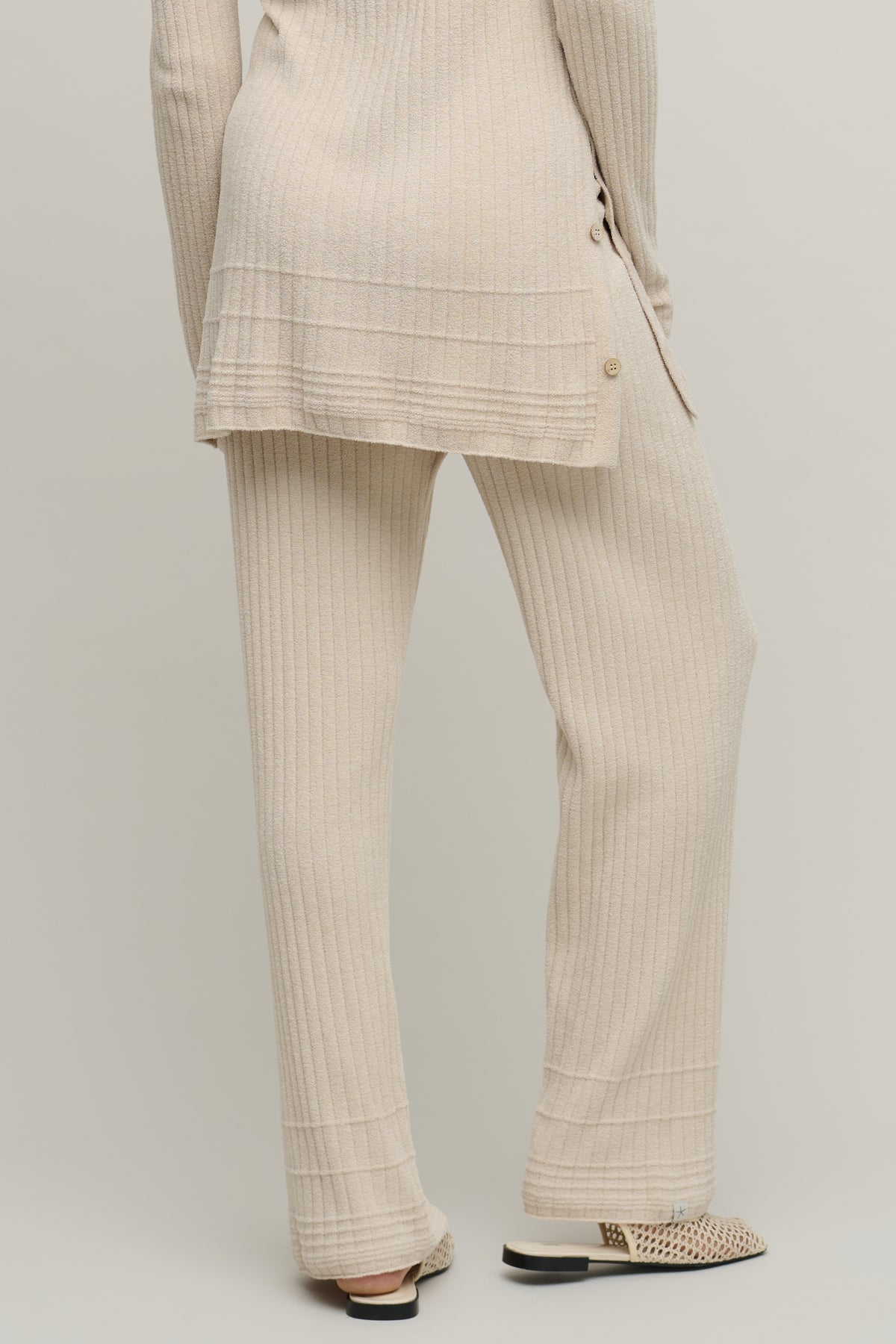 Comfort meets effortless style with the Textured Hem Rib Pant. Designed with a soft ribbed knit texture, these pants bring both cozy comfort and a polished look to your everyday wardrobe.